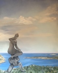 2019Surrealistisch beeld in olieverf in de omgeving van Port Lligat, de plaats waar Salvador Dali verbleef.